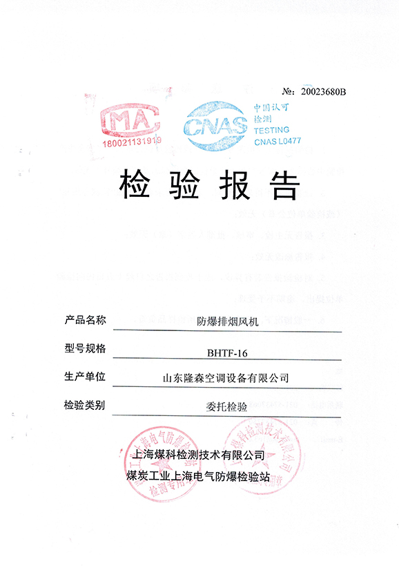 • 防爆排煙風機合格證